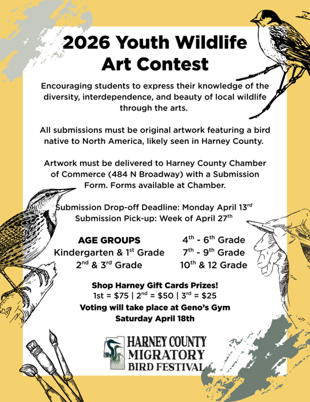 - Connect Harney County youth to their community and beyond be showcasing their work through the Harney County Migratory Bird Festival